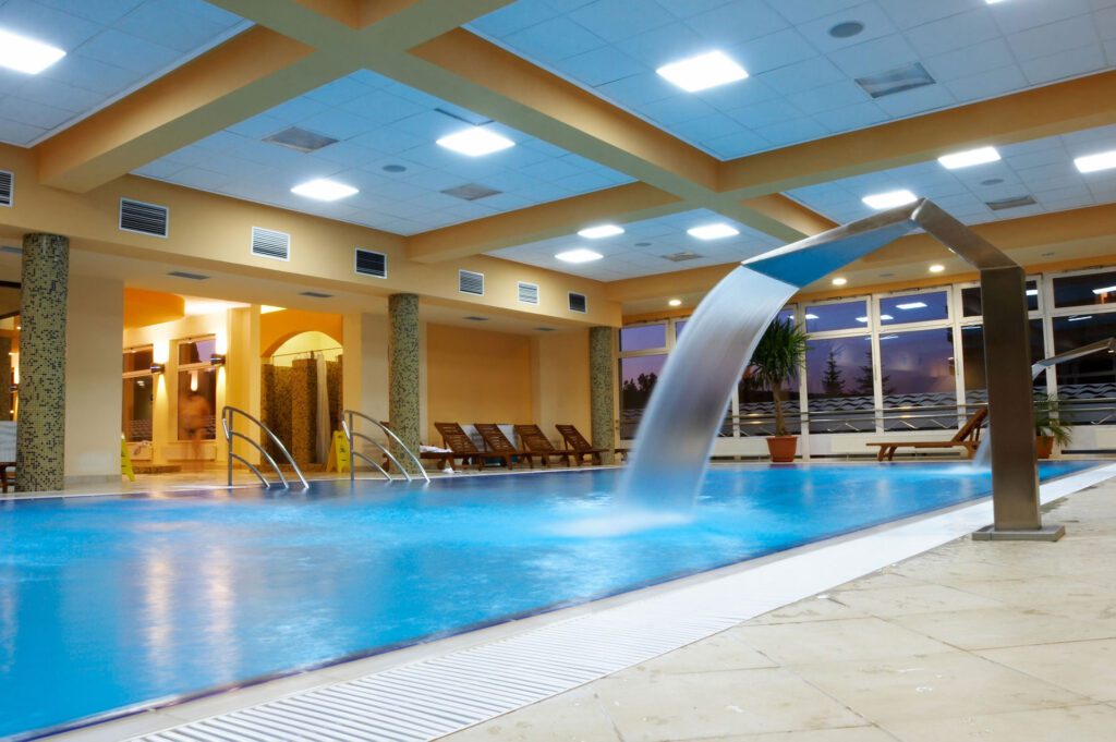 - Luxury pools: The focus of luxury pools could be on design and may include elements like spas, waterfalls, or tanning the ledges.